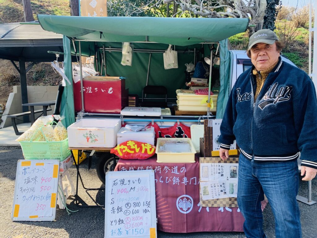 石焼きいも・わらび餅・ポップコーンなど、食べ歩きに最適なメニューが揃うキッチンカーが登場。花見のお供にぜひどうぞ!