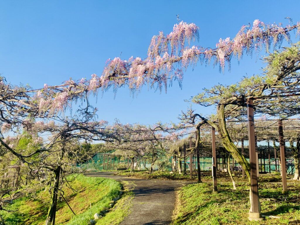 本日4月17日より、待ちに待った「藤&ネモフィラまつり」がスタート! 園内は、春の陽気に誘われて一気に華やぎを増しています。