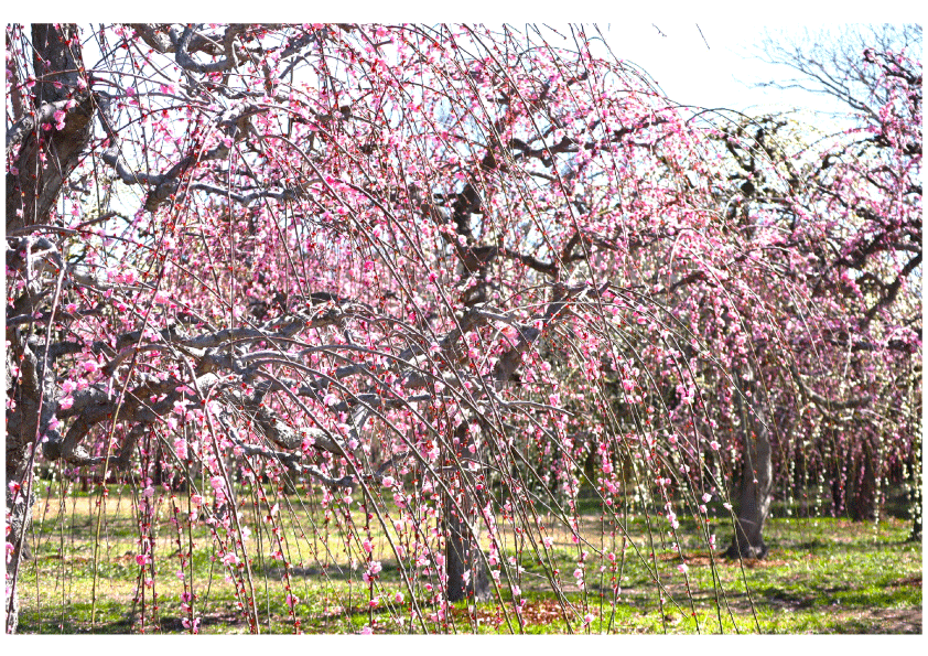 現在80%開花しております。しだれ梅が満開を迎えており、見頃です。梅まつり終了まであと10日、ぜひお待ちしております。 -