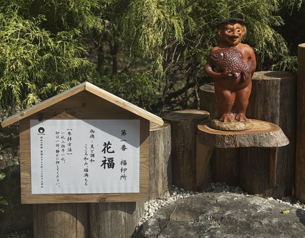 Please stamp your stamp in front of each of the seven messenger statues while quietly making a wish. Prepare your mind, join your hands, bow once, clap twice, and bow once more. Please stamp your stamp quietly once.