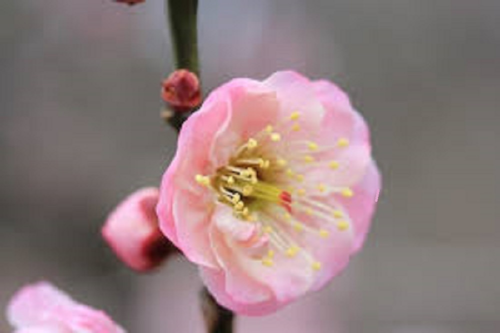Furusato no Nishiki is a beautiful plum blossom with red stripes on white petals. The double flower with many layers of petals gives a gorgeous and elegant impression. It is said that this name was given because its beautiful flower appearance reminds us of our hometown. It is used not only as a garden tree but also as a flower arrangement or bonsai because of its unique flower color.